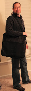 I made a suitcase! Didn't know it was going to be a suitcase, lol, but that is what it turned out to be. A while back I joined an online sewing group with Suede Says (he was on Project Runway, Season 5 I know, how cool is that!). It was to make his bag from his Simplicity Pattern 0109, Keep A Child Alive. If you are interested you can get it over here for a $1.00! 5% of sales benefit Keep a Child Alive. It took me two days to make mine, two whole days in my pj's. A labor of love for my hubby. He seems to like it, at least well enough to model it for me. Bonus, I finished it in time to enter it into Sew Sweetness: Purse Palooza 2013! Well, looks like my job here is done for now. Looking forward to creating something new tomorrow!